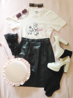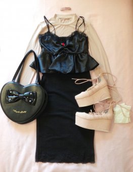 My favorite designs which can be found in Larme fashion are Pin-Up Dolly (also known as "retro girly") and Pheromone Fetish. Pin-up Dolly draws on west retro style and interprets it through a girlier, cuter lens. Pheromone Fetish is an even more mature look that, for me, emphasizes femininity more so than girliness. It frequently involves lingerie-inspired elements (like boudoir slippers and garter devices) and fetish-inspired elements (like harnesses and leather-based). The best companies are Katie the Store, Bubbles, EATME, mon Lily, Honey Cinnamon, lilLilly, and Ank Rouge!